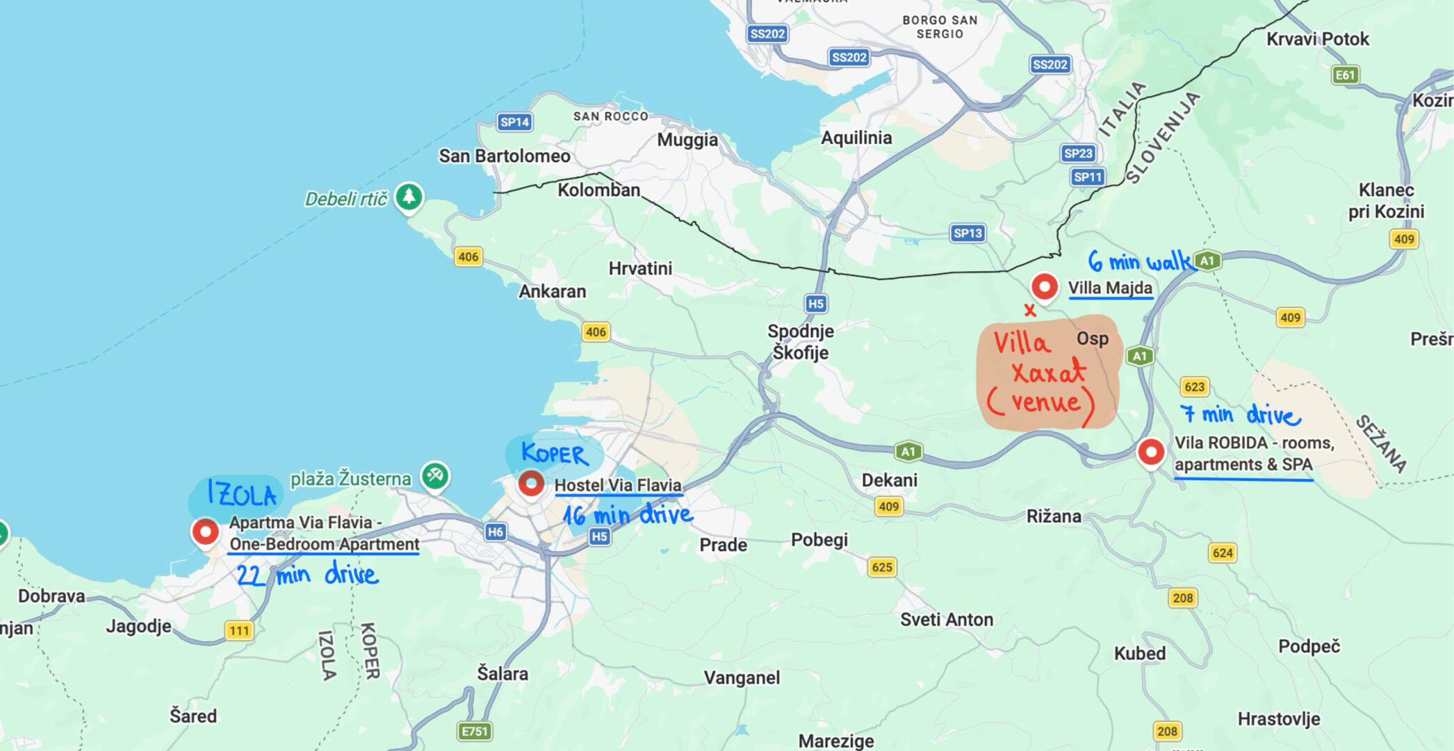 We recommend booking your accommodation as soon as possible, as Slovenia is a very popular summer destination—especially along the coast.On the map below, you’ll find a few accommodation options near the venue, but you can explore additional options on Booking.com. We generally recommend using Booking.com rather than Airbnb when traveling in Europe.If you’re interested in booking an apartment in Izola or a room/apartment in a guesthouse in Koper, please reach out to us—we’d be happy to help you arrange it (and even secure a discount!).Please also note that most accommodations in Slovenia charge a tourist tax, which is paid separately at check-in. The amount varies slightly from city to city and is calculated per person, per day, so be sure to factor this into your travel budget.
